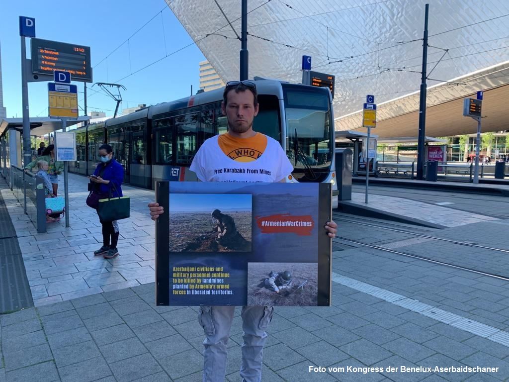 Auf Initiative des Benelux-Kongresses der Aserbaidschaner (KAB) und mit Unterstützung des Staatlichen Komitees für die Arbeit mit der aserbaidschanischen Diaspora fanden in Rotterdam und Haarlem, in den Niederlande, Kundgebungen statt, um gegen Armenien zu protestieren, das sich weigerte, Aserbaidschan die Karten von Minenfeldern zur Verfügung zu stellen.Dasfazitvivod berichtet.