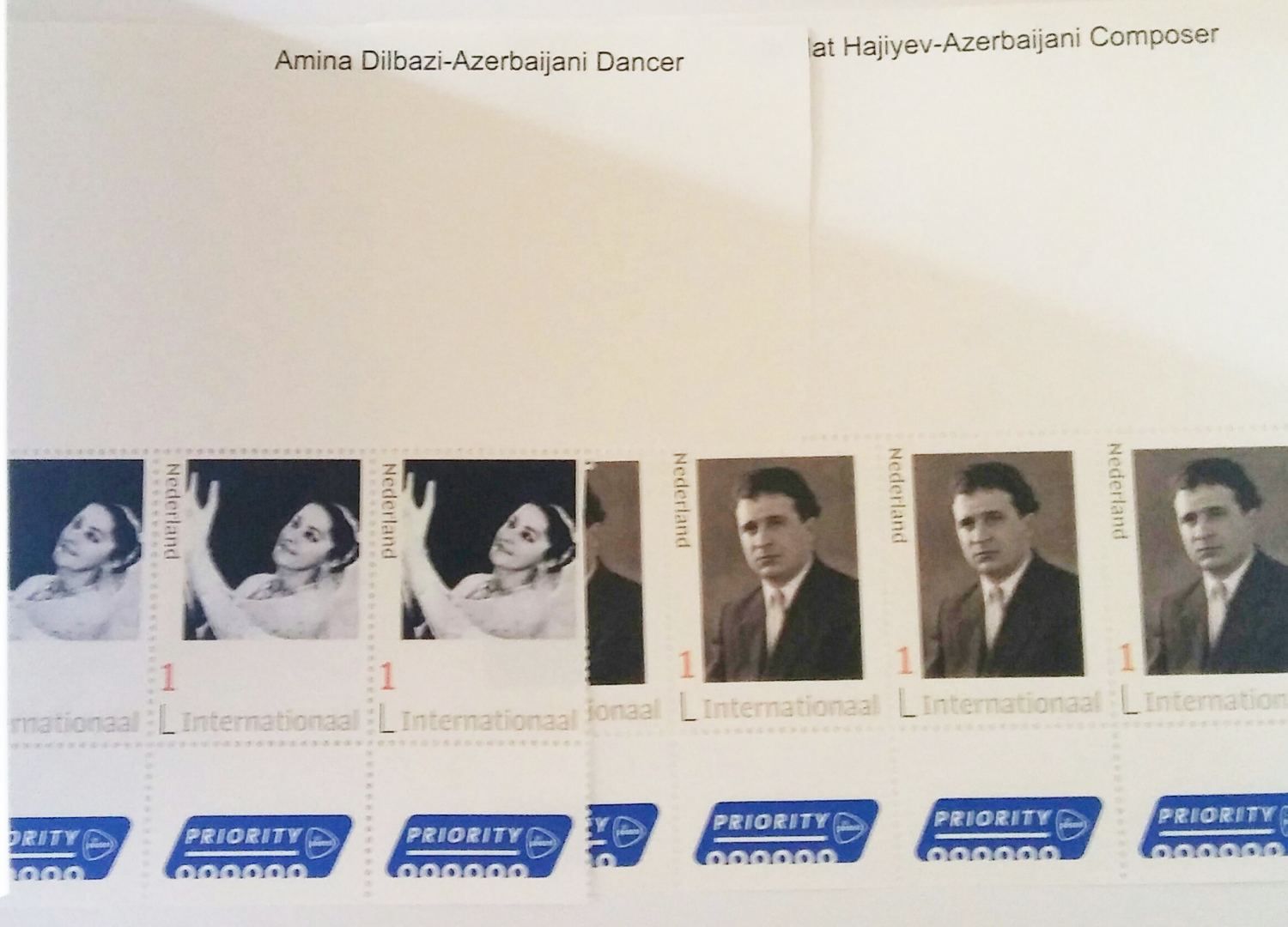 In den Niederlanden gaben internationale Briefmarken "Amina Dilbazi" und "Jovdet Hajiyev" zu Ehren berühmter Kulturschaffender Aserbaidschans heraus. Die Briefmarken wurden von PostNL, dem offiziellen nationalen Postbetreiber der Niederlande, im Rahmen des Projekts der Choreografin Saltanat Revangizi, mit dem Titel „Die Perlen Aserbaidschans“ herausgegeben.