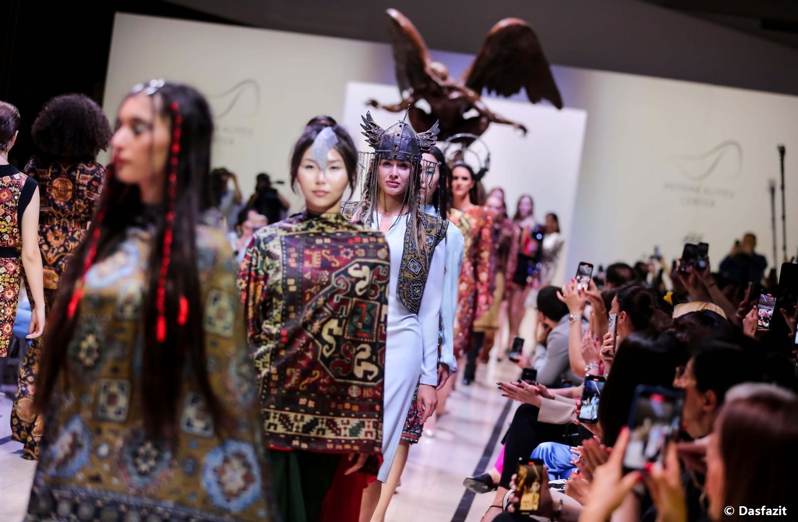 Den Gästen wurden neue Teppiche gezeigt, die von den Elementen der alten Elemente inspiriert wurden. Große Aufmerksamkeit erregte auch die Kleiderkollektion "Sumakh", die Motive, satte Farben und Muster aserbaidschanischer Teppiche verwendet.