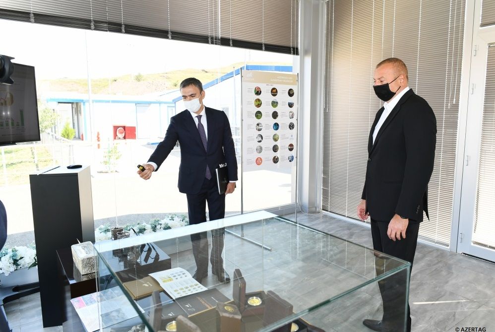 Im Rahmen seines Besuchs im Bezirk Daschkasan hat der Präsident der Republik Aserbaidschan Ilham Aliyev die Arbeit des integrierten regionalen Verarbeitungsbereichs der Offenen Aktiengesellschaft „AzerGold“ kennengelernt.
